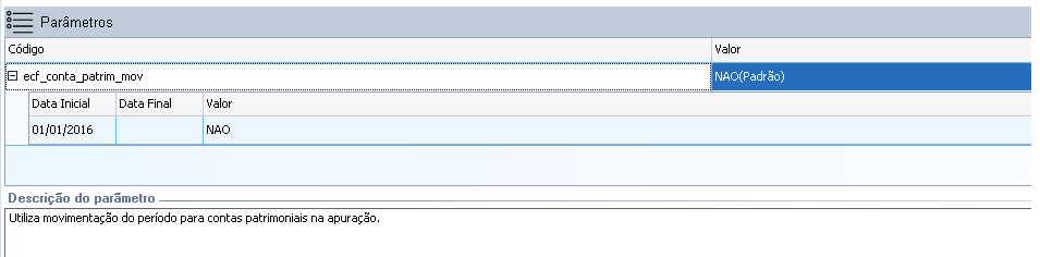 - Definido como "NÃO", os relatórios de apuração considerarão os saldos finais das contas patrimoniais;