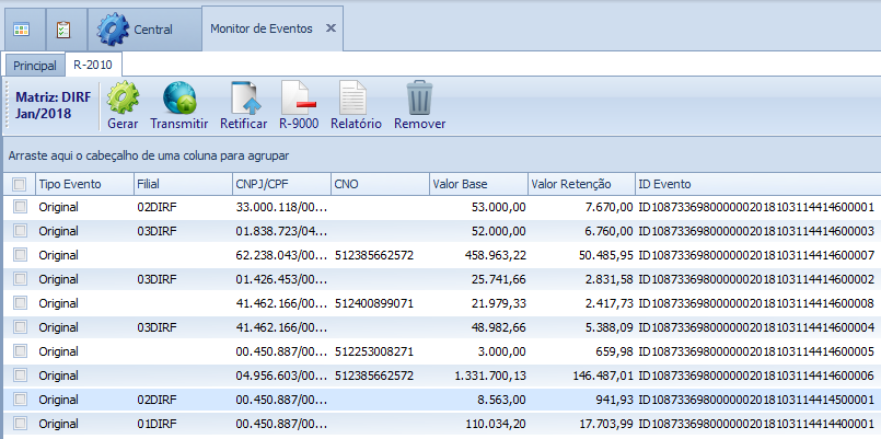 Parte: Fornecedor PJ – Conferência dos eventos do Reinf