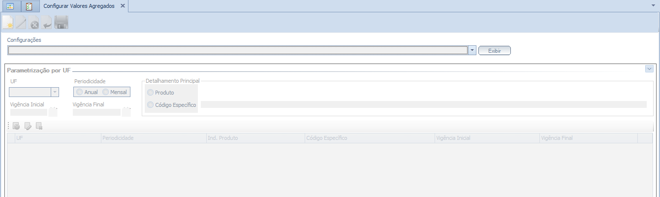 SPED: EFD ICMS/IPI > Valores Agregados > Configurar