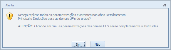 Ao salvar as parametrizações desta tela, caso haja mais de uma UF configurada na tela principal, o sistema emitirá a seguinte mensagem: