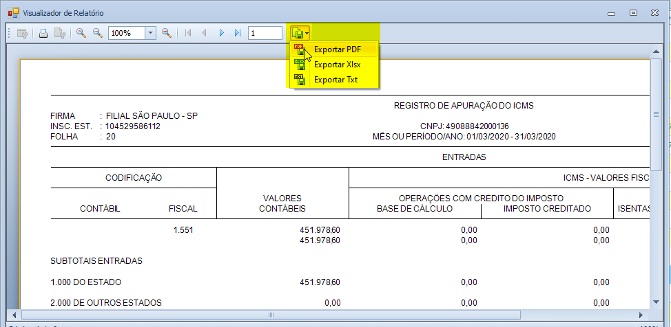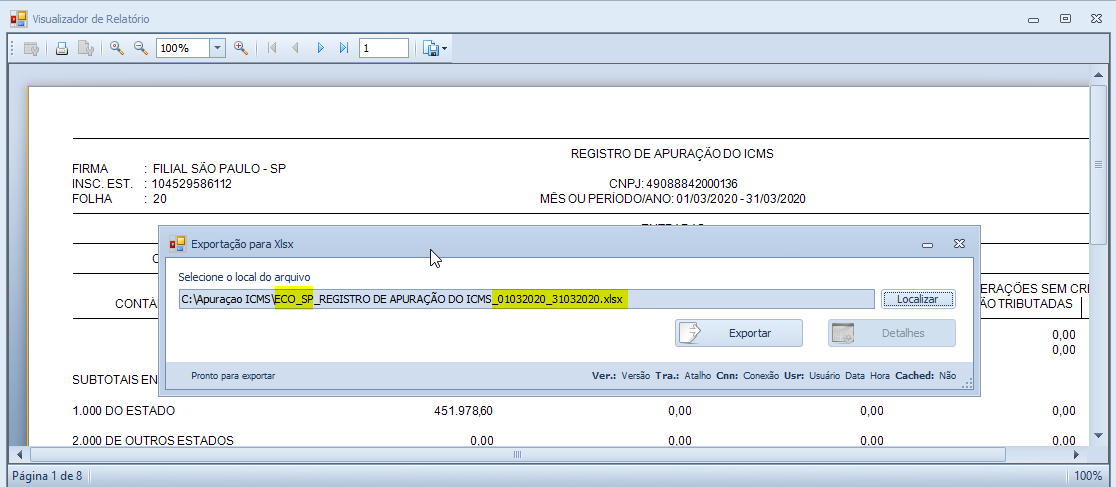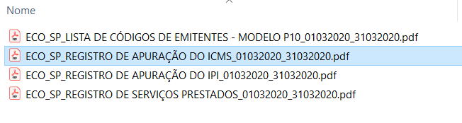 Ao salvar os livros Registro de Apuração do ICMS, Registro de Apuração do IPI, Lista de Emitentes e Registro de Serviços Prestados foi alterado o padrão de nomenclatura, incorporando as informações de matriz, filial e período de geração.