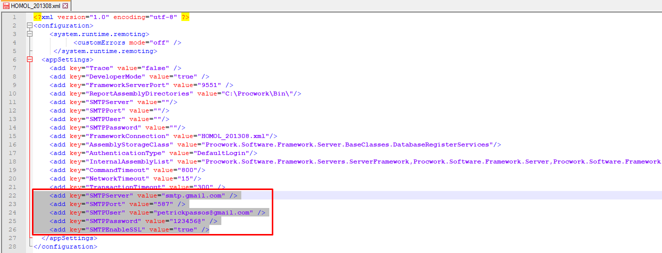 SMTPPort = Tag responsável pela informação da porta usada no servidor de email o qual será disparado o email.