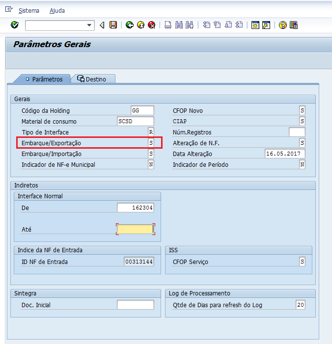 A parametrização abaixo é obrigatória para que a extração seja realizada: