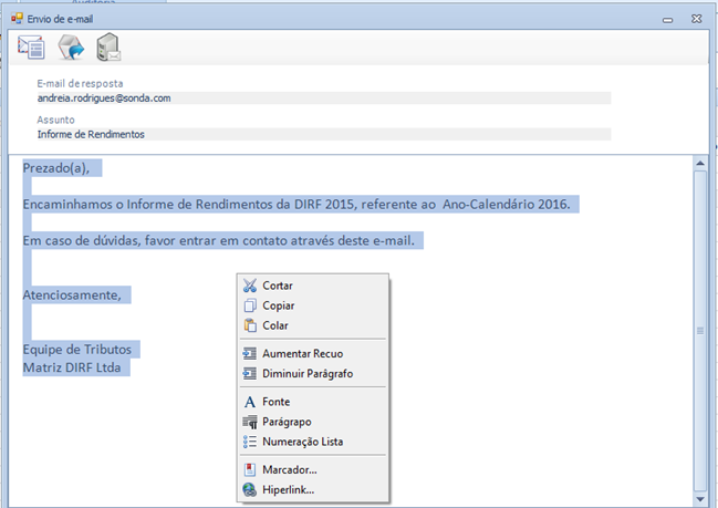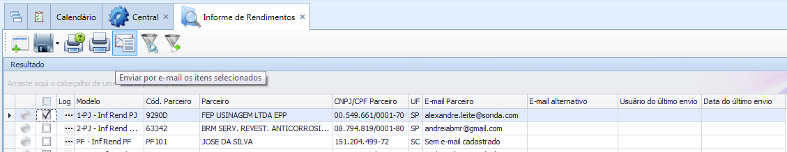 Para enviar o Informe de Rendimentos por e-mail: