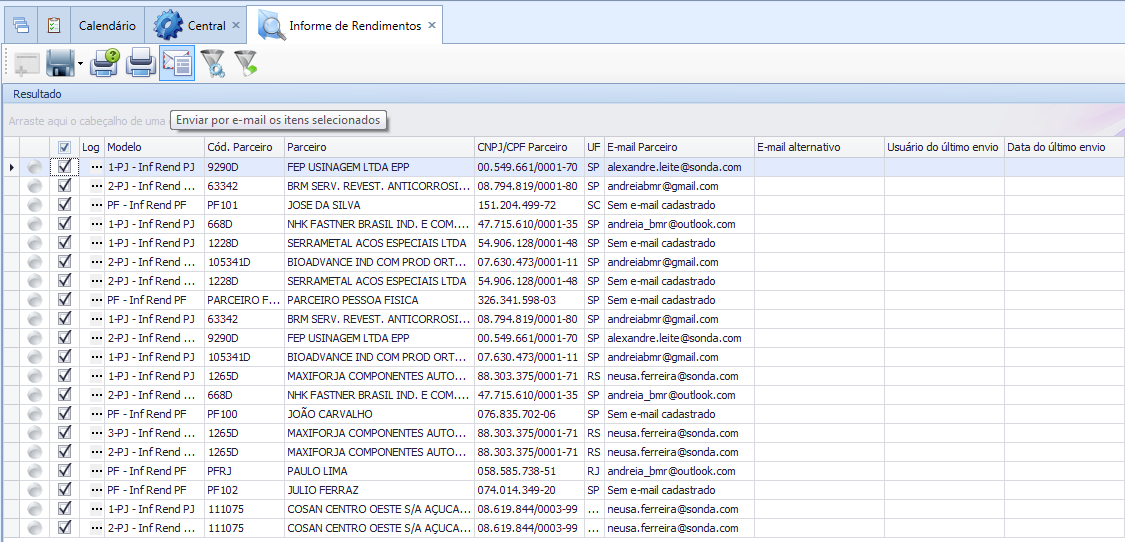 Será enviado um e-mail para cada Informe de Rendimentos, mesmo que exista mais de um Informe para o mesmo Parceiro.