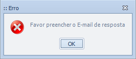 E-mail de resposta: informar o e-mail resposta. Preenchimento obrigatório. Se não for preenchido será exibida a mensagem e o e-mail não será enviado.