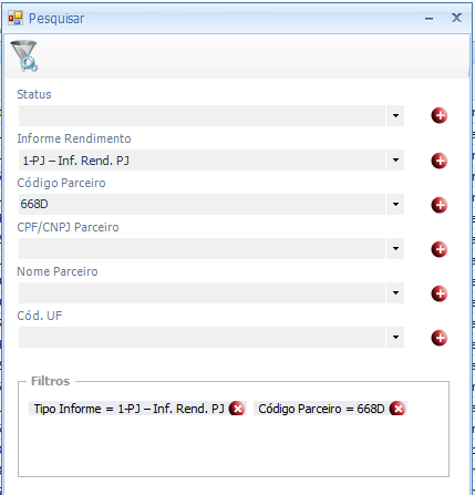 Código Parceiro: Apresenta uma lista com os códigos de parceiros dos informes de rendimentos gerados.