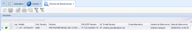 Se o e-mail for cadastrado na tela do Parceiro depois da geração dos Informe de Rendimentos, não será necessário efetuar nova geração, basta apenas fechar e abrir a tela de Informe de Rendimentos para que o e-mail cadastrado na tela do Parceiro seja demonstrado.