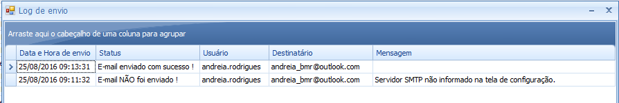 Na coluna Mensagem serão demonstrados os motivos pelos quais o e-mail não foi enviado, por exemplo: