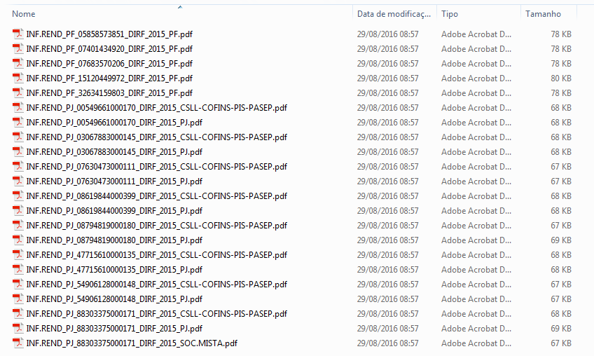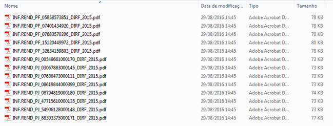 Ao selecionar esta a opção, os Informes serão agrupados pelo CNPJ do Beneficiário (CNPJ do Parceiro) e será salvo um arquivo PDF para cada beneficiário.