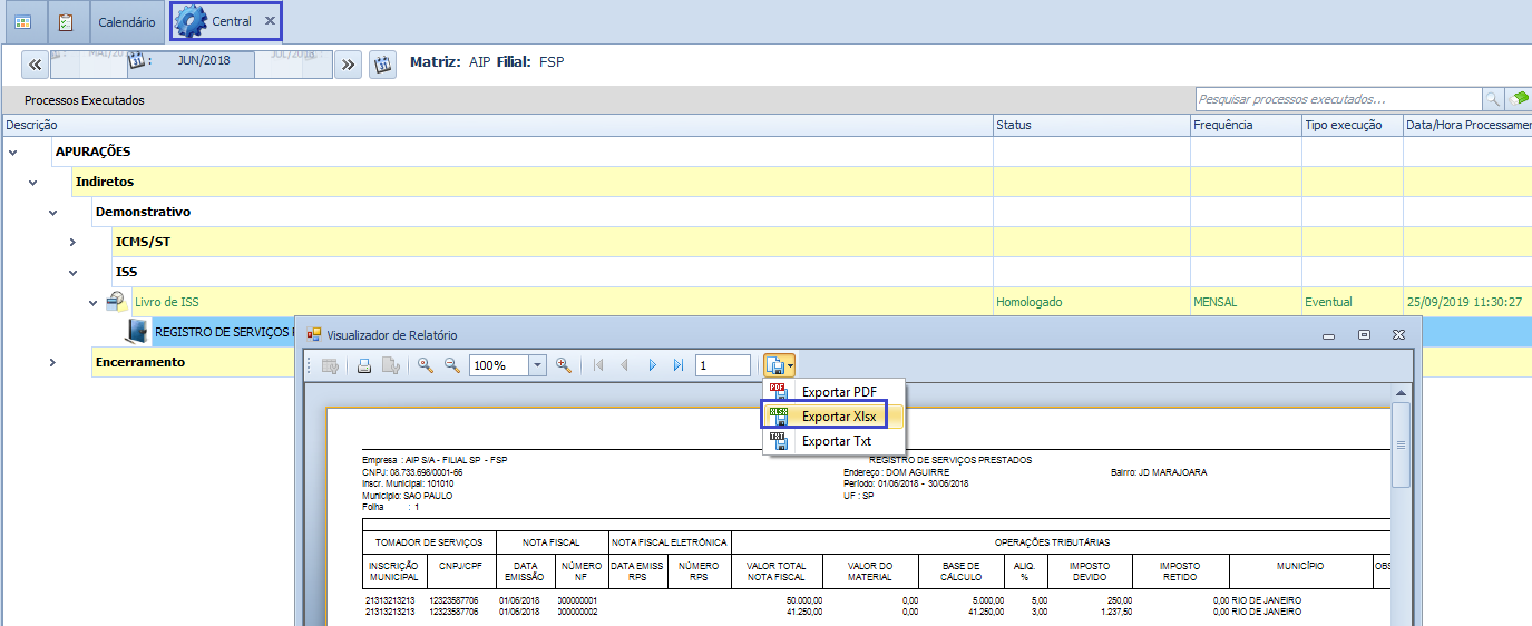 Descrição da Nota: Melhoria efetuada na Central, na exportação de arquivos para Excel.
