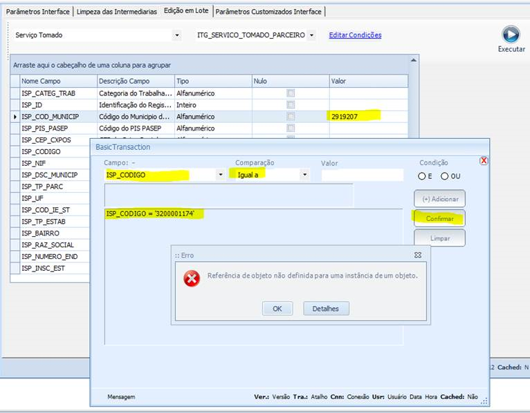 Ao editar em lote registros com erros de validação, através da funcionalidade Editar Condições, era emitida a seguinte mensagem de erro: