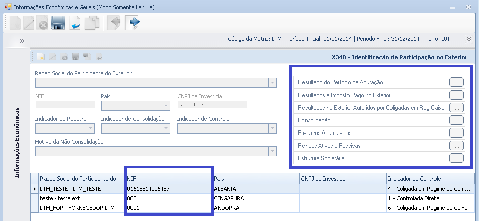 Descrição da Nota: Tratamento efetuado na tela de Informações Econômicas e Gerais para retirar filtro NIF da geração dos dados de Participações no Exterior.