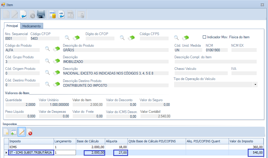 Para encontrar a alíquota do ICMS-ST, será validada a alíquota do imposto 03 (ST) informada no item da Nota Fiscal.