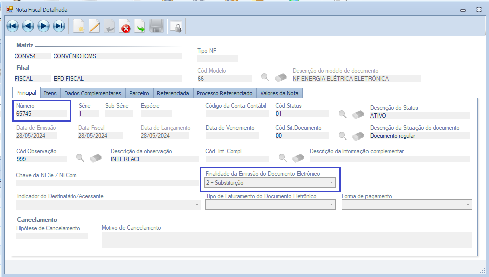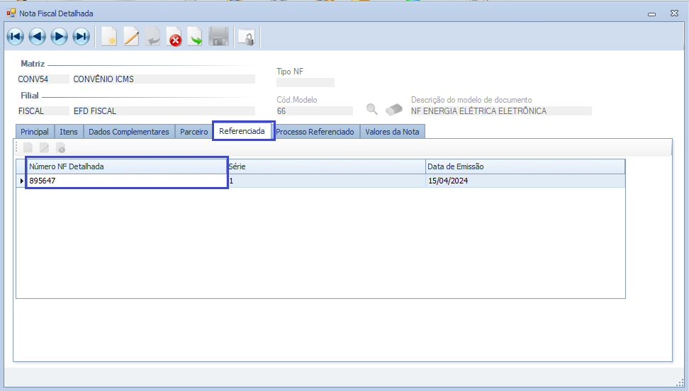 Essa alteração foi feita incorretamente uma vez que a nota que deve ser informada no relatório é a nota fiscal referenciada e não a principal.