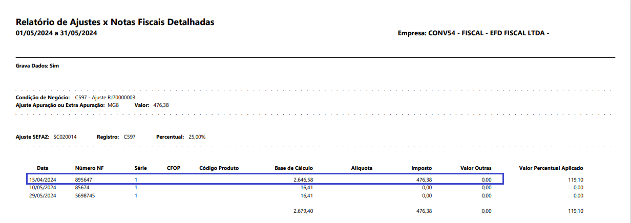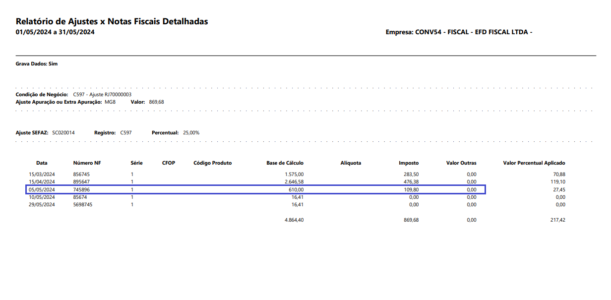 Funcionalidade: Relatório de Ajustes X Notas Fiscais Detalhadas