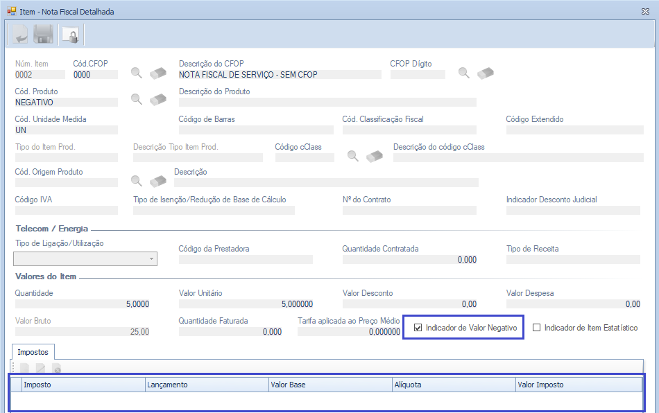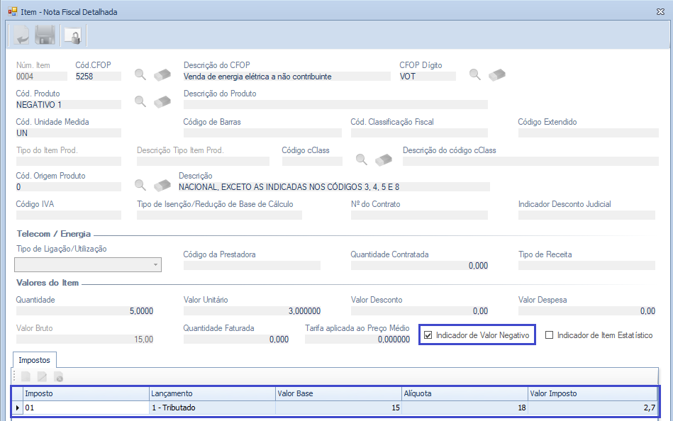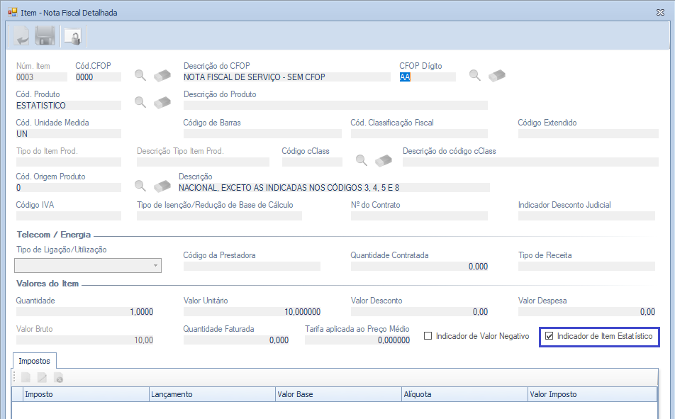 3 – Melhoria realizada no relatório para considerar os indicadores de itens negativos e estatísticos.