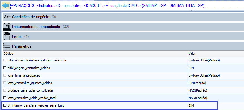 Tratamento para possibilitar a transferência de valores de débito do ICMS Substituição Tributária Interno para o ICMS próprio, através de parâmetro, de maneira a ser recolhido em documento de arrecadação único.