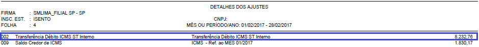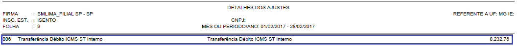 Descrição: Indica que o valor do saldo devedor do ICMS ST Interno será transferido para o ICMS próprio.