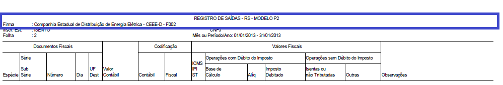 Descrição da Nota: Tratamento efetuado no Layout do Livro Registro de Saidas (MOD 2 e MOD 2A) e Livro Registro de Apuração do ICMS (MOD 9).