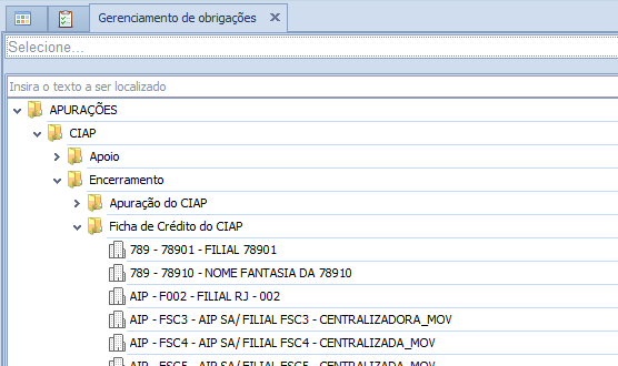 Apurações > CIAP > Encerramento > Fichas de Crédito do CIAP