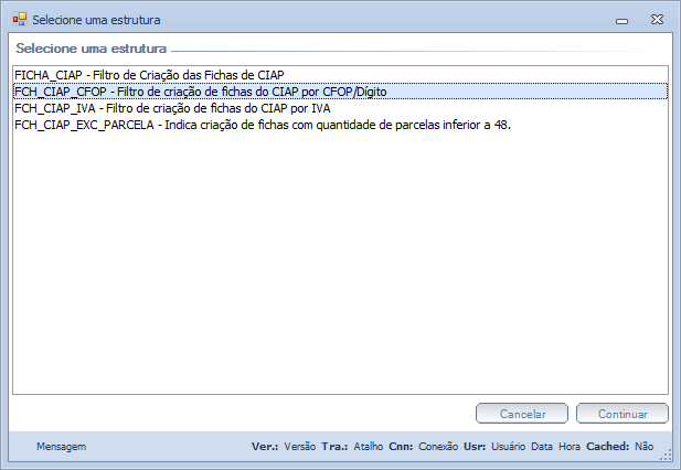 Atenção: A escolha da estrutura deve seguir a regra utilizada pelo usuário para criação de fichas, ou seja, utilizando o CFOP/Dígito ou IVA, não sendo possível utilizar os dois ao mesmo tempo.
