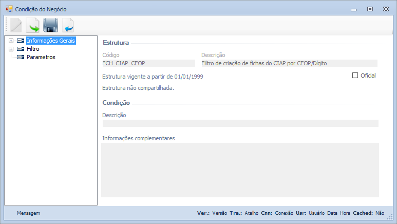 Filtro: preencher com os CFOP/Dígito (se utilizada a estrutura FCH_CIAP_CFOP) ou os IVA (se utilizada a estrutura FCH_CIAP_IVA).