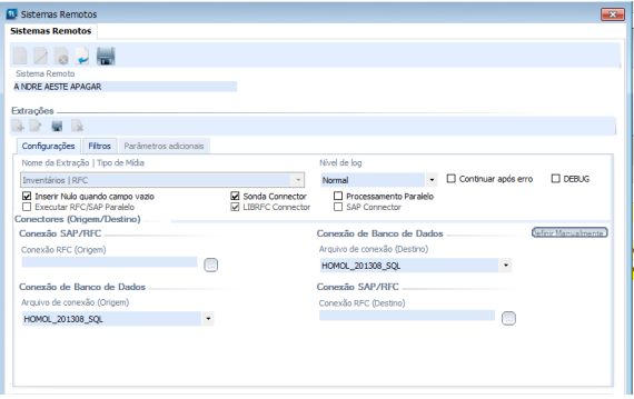 1) Implementação da redefinição dos parâmetros na Tela de Sistemas Remotos, ao editar os parâmetros de Extração de Dados, através da tela de Sistemas Remotos, será possível redefinir todas as conexões para a Extração de Dados, inclusive as que anteriormente eram ocultas, clicando no Botão “Definir Manualmente”, conforme demonstram as imagens a seguir: