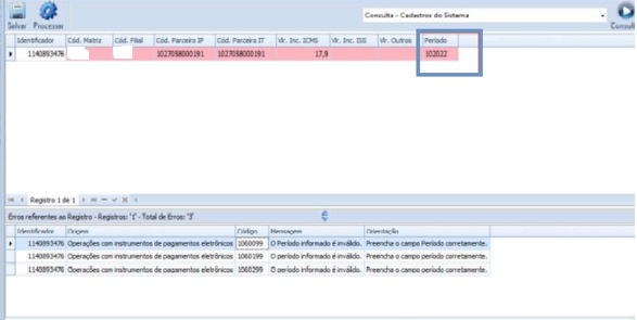 E conforme as validações abaixo listadas, caso seja enviada a informação 01/2022 (com a barra (/)), o registro parará na Interface com as seguintes mensagens: