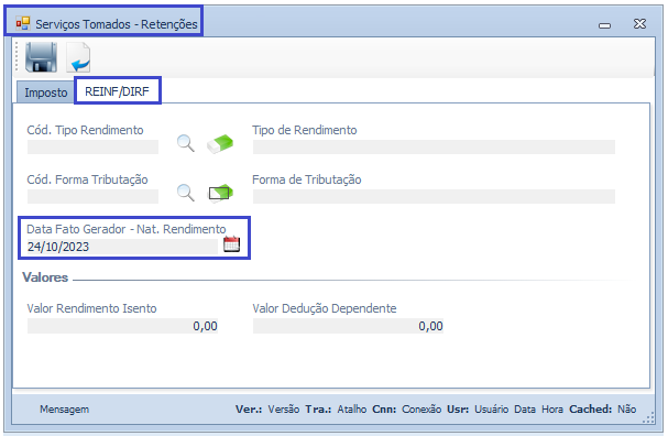Descrição da Nota: Serviços Tomados: melhorias realizadas na tela e na tabela "STD_SERVICO_TOMADO_IMPOSTO" ao incluir o campo "Data Fato Gerador - Nat. Rendimento" (STI_DT_FG_NAT_REND), em atendimento a Nota Técnica EFD - Reinf 04/2023.