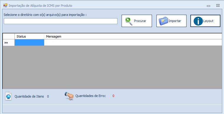 Tratamento para disponibilizar na funcionalidade Alíquota de ICMS por Produto a opção de carga das parametrizações via arquivo texto.