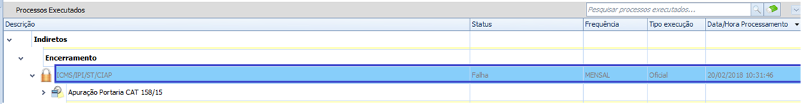 Ocorria erro na abertura de período de Indiretos, para Filiais com apuração da Portaria CAT 158/15, com mais de mil notas fiscais no período.