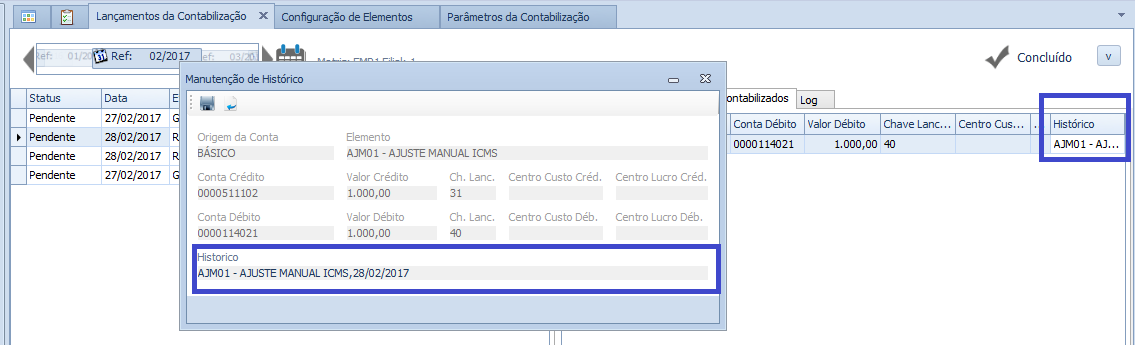 Lembrando que o campo de Histórico, na tela de 'Lançamento da Contabilização', também, é passível de edição após a geração do mesmo, antes do envio para o SAP, sendo que essa alteração é válida somente para o lançamento que está sendo editado.