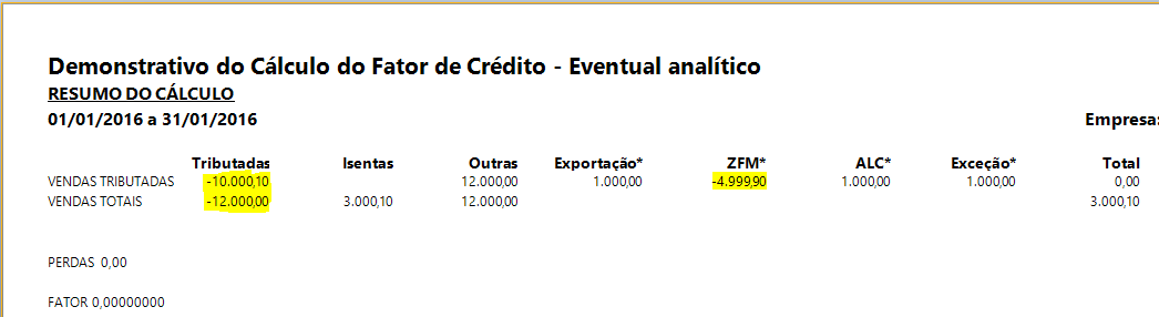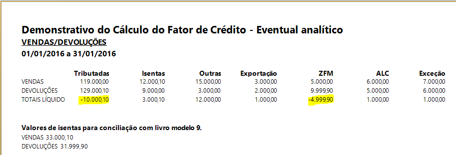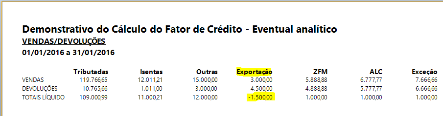Há cenários em que, o valor de Devoluções é maior que o valor das Vendas do mesmo período. Na ocorrência deste tipo de situação, o valor líquido desta operação resultava em negativo, e com valor negativo em qualquer coluna do cálculo, o resultado do Fator de Crédito de CIAP poderia ser maior que 1 (ou 100%).