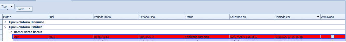 Ao gerar o Relatório Exportação Dinâmica de Notas fiscais, está sendo finalizado com erro.