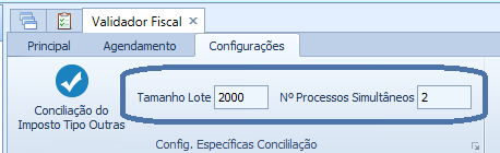 - Nr. Processos Simultâneos: número de processos paralelos sendo executados ao mesmo tempo (= número de 'threads') para gravação das notas intermediárias, limitados ao número de processadores da aplicação. Valor default 2.