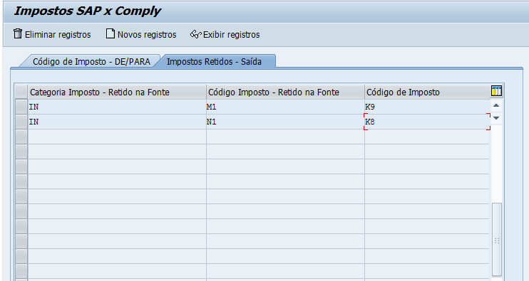 Parametrização somente para extração de imposto retido de INSS sem destaque na nota/documento. Incluir a Categoria do Imposto Retido (SAP), Código de Imposto Retido (SAP) e o Código do imposto do Comply.