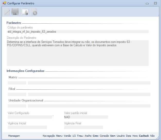 Descrição da Nota: Evolução na Interface de Serviço Tomado para consumir o novo parâmetro 'std_integra_nf_bc_imposto_63_zerados'