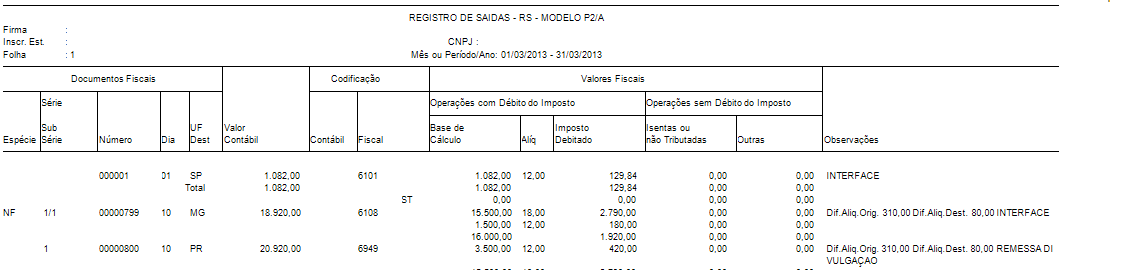 Gerenciamento de Obrigações = > Apurações = > Indiretos = > Demonstrativo = > Entrada / Saída = > Apuração Registro de Saídas.