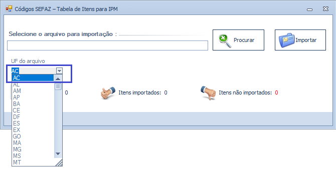 Melhoria na tela Valores Agregados por Município, retirando a opção vazio do campo UF do arquivo.