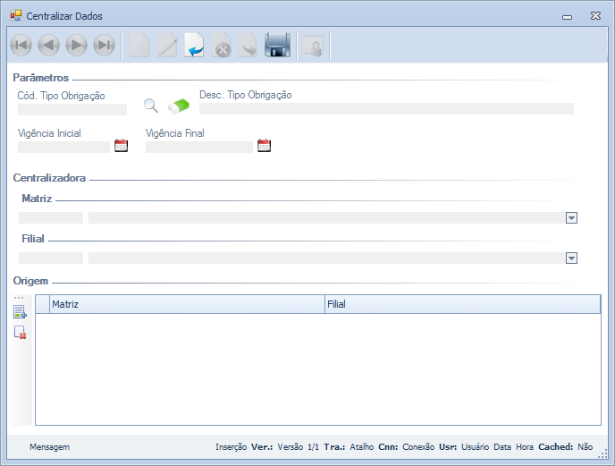 Realizar o cadastro de todas as Matrizes e Filiais de Origem, que farão parte da unificação dos dados na geração da Obrigação para a Centralizadora. Não é permitido o cadastro da mesma Matriz e Filial na Origem.