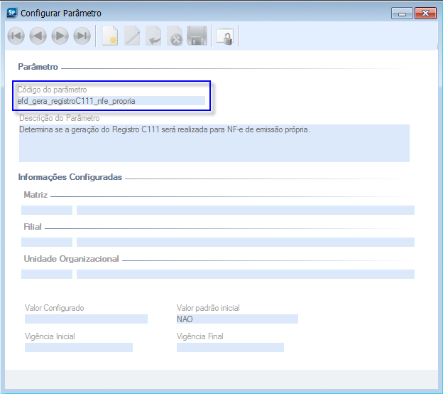 Por isso, foi disponibilizado o parâmetro “efd_gera_registroC111_nfe_propria” na tela Configurar Parâmetro, conforme ilustrado abaixo: