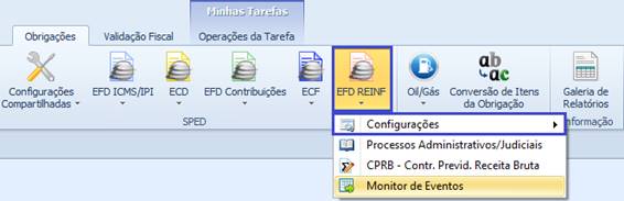 Melhoria efetuada no menu do EFD REINF para apresentar as telas de configurações separadas das telas principais.