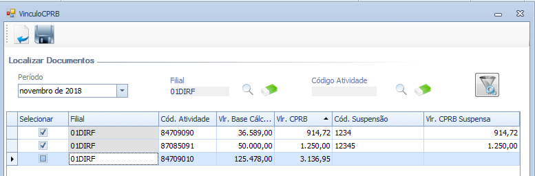 Selecionar a linha e preencher o Vlr. da CPRB Suspensa.