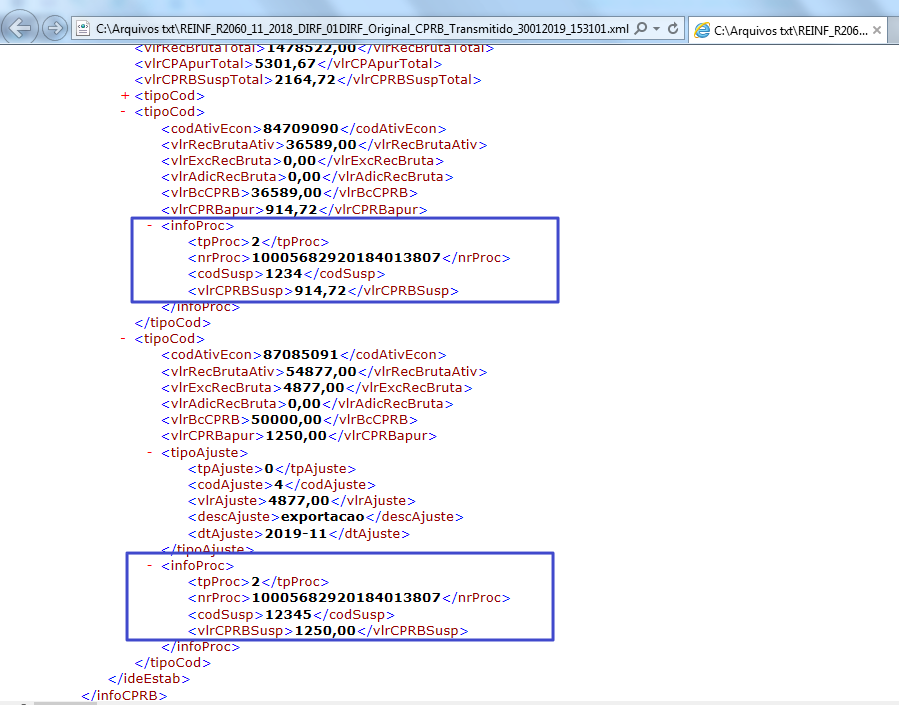 Sendo assim, o Valor da Contribuição Previdenciária com exigibilidade suspensa deve ser informado por Código de Atividade Econômica.