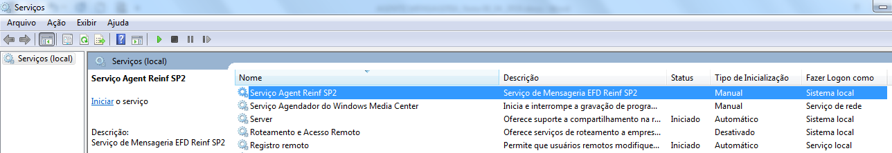 Serviço de Mensageria – Serviço Agent Reinf SP2