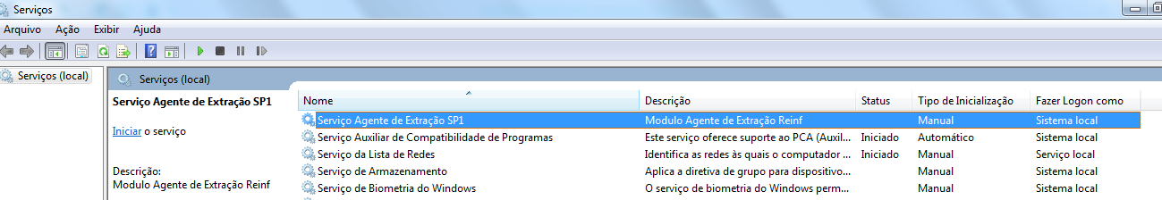 Serviço de Extração - Serviço de Agente de Extração SP1