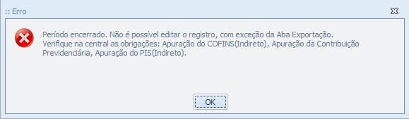 Tratamento na edição de notas fiscais em períodos bloqueados para demonstrar quais os processos com fechamentos oficiais que estão impedindo a edição da Nota Fiscal.