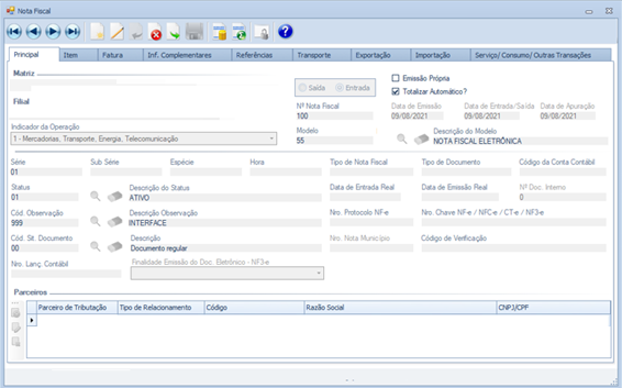 Melhoria na Tela Nota Fiscal permitindo a inclusão de dois ou mais itens no mesmo documento e, ao selecionar a opção editar quando estiver na aba item permanecer na mesma aba.