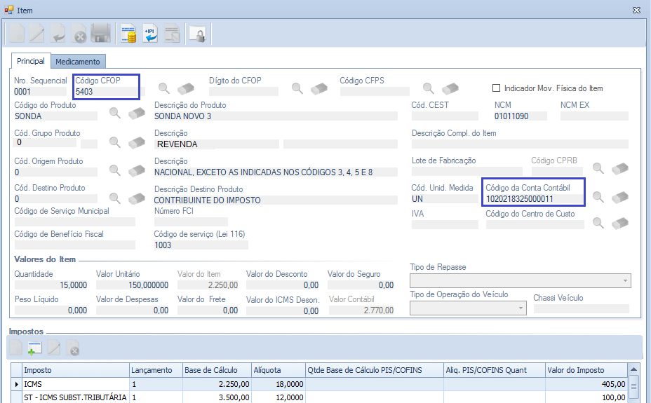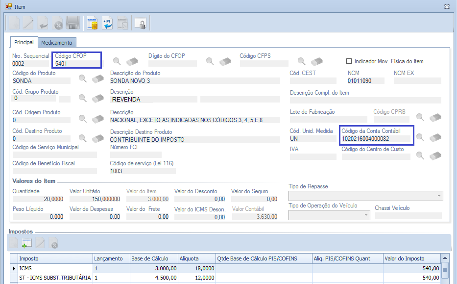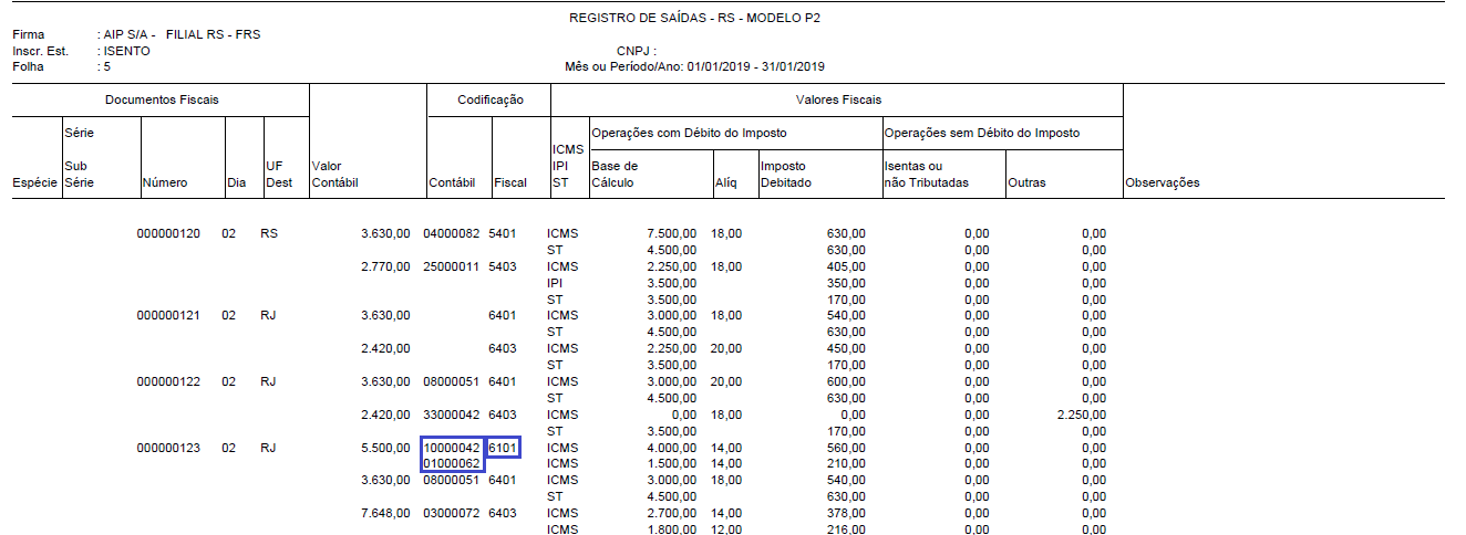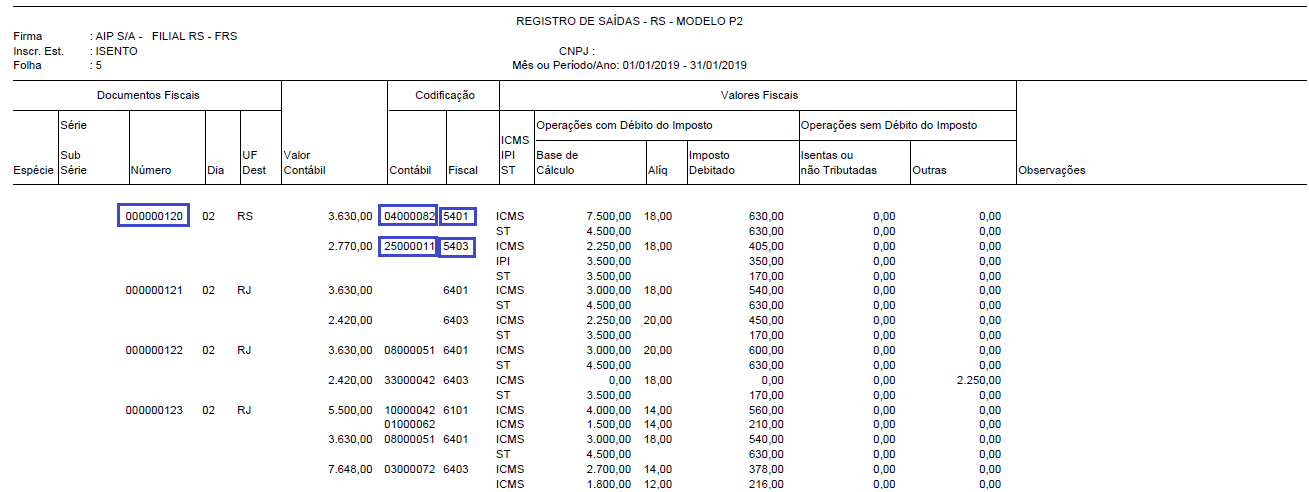 Se houver mais de um item na nota fiscal com o mesmo CFOP e contas contábeis diferentes, serão criadas linha distintas para escriturar as referidas contas.